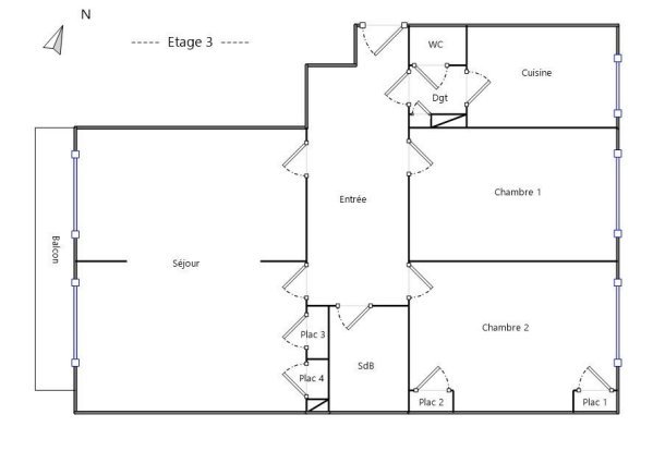 Appartement T4 au 3ème étage composé d'une entrée, d'une cuisine, d'un séjour donnant sur un balcon de 4.96 m², de deux chambres, d'une salle de bains et de wc indépendants.